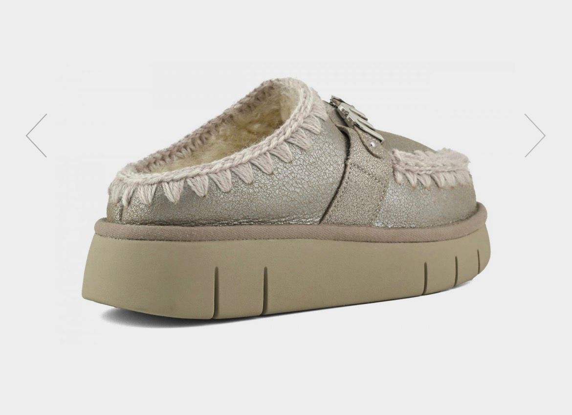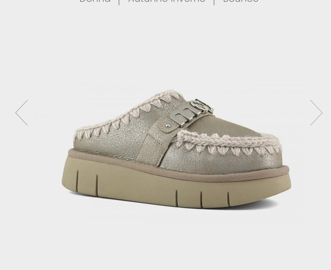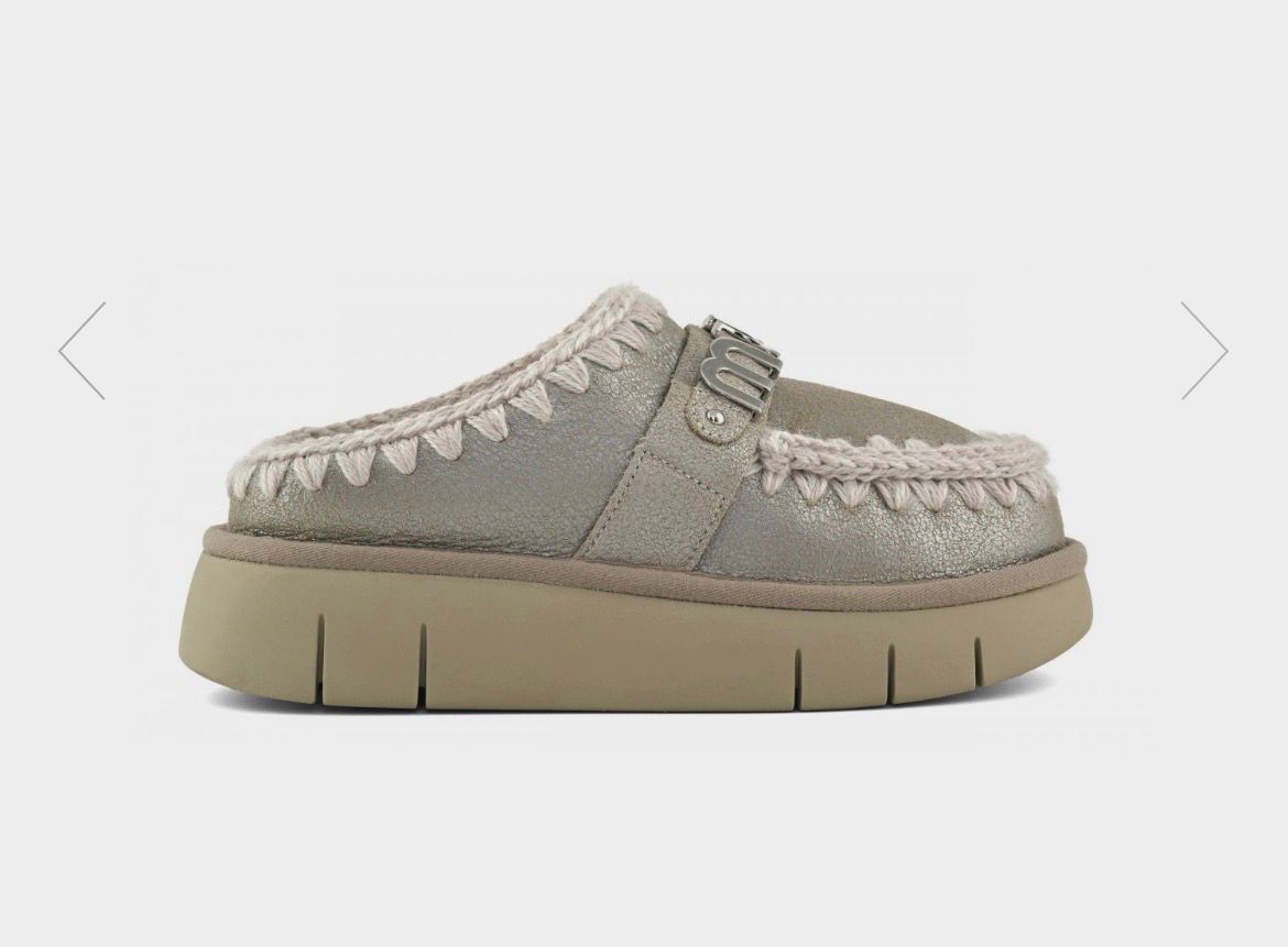 DETTAGLI PRODOTTO Rinnovato per l'autunno-inverno 2025 con speciali finiture in pelle, il bounce clog di mou con logo in metallo è realizzato artigianalmente in vera pelle di montone double-face, con le inconfondibili cuciture in lana all'uncinetto firmate mou. Il plantare in morbido montone e la suola leggera in EVA e gomma rendono questo modello incredibilmente comodo da indossare.